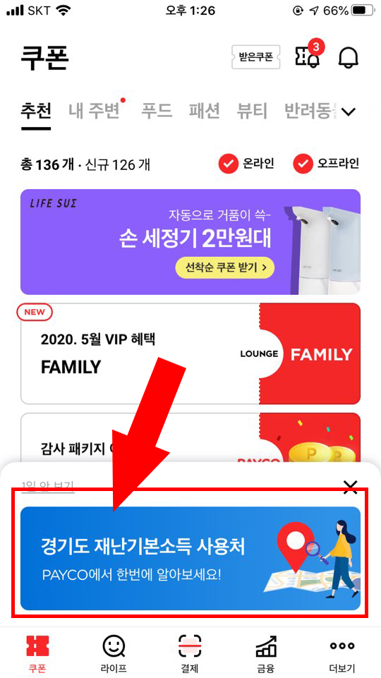 현재 페이코 앱에서는 경기도의 지역에 한해서만