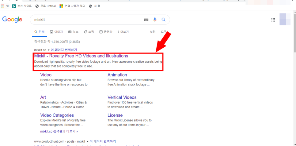 검색한 이후 나타난 화면입니다.